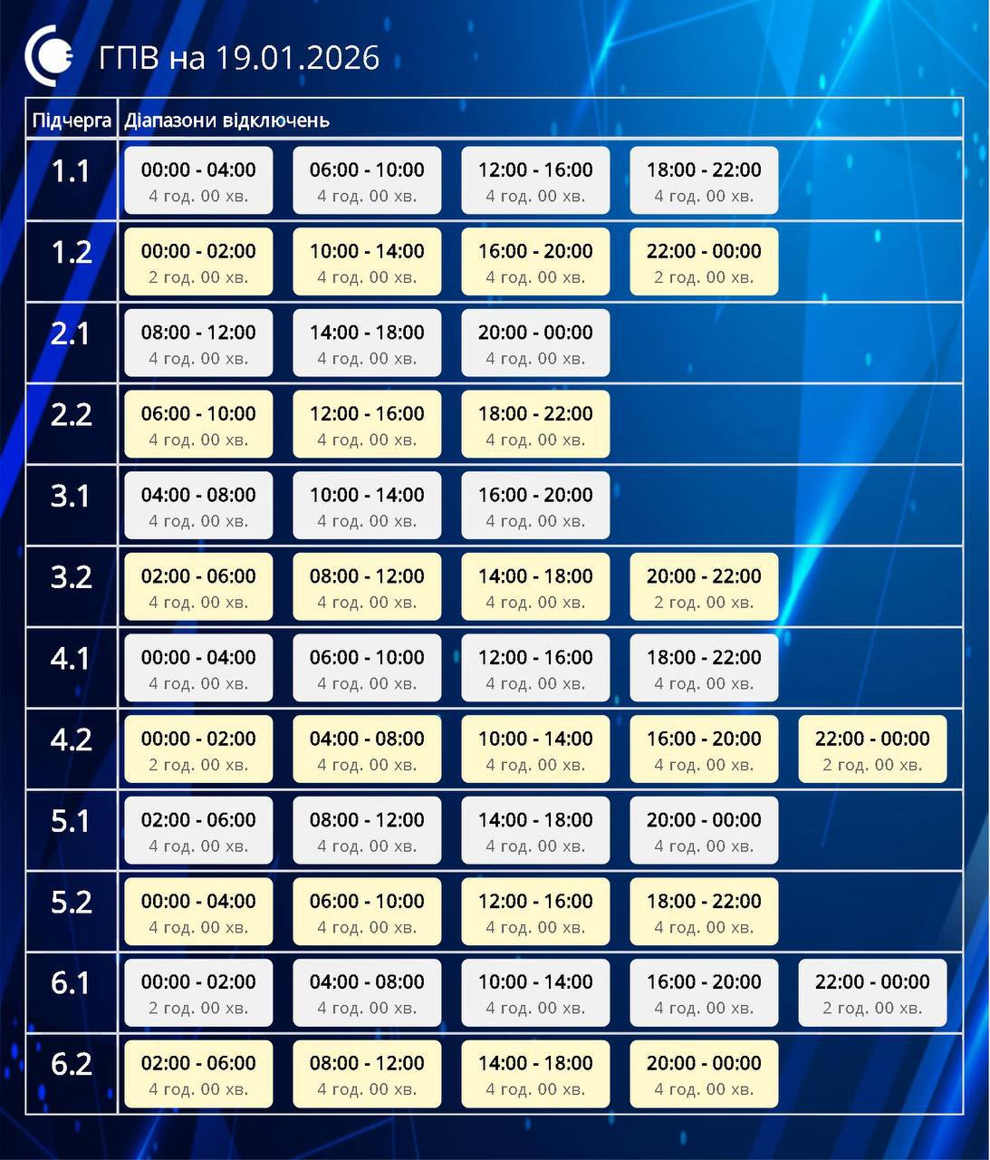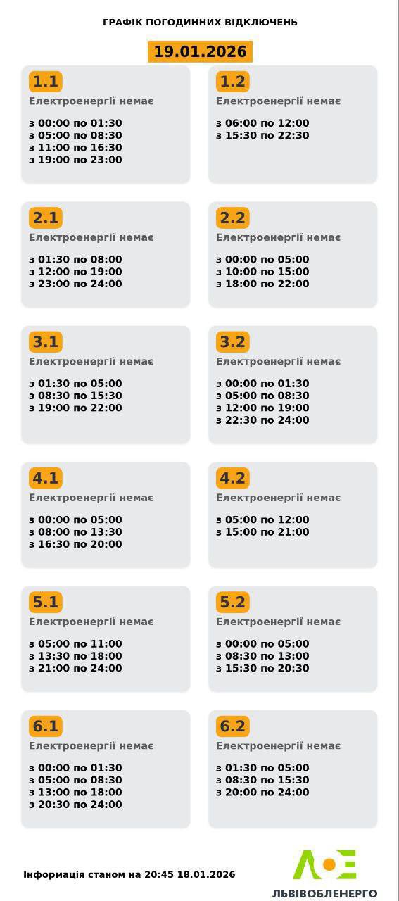 Из-за энергетического террора России украинцы вынуждены жить в условиях постоянных отключений света. Поэтому в понедельник, 19 января, в течение всего дня в стране будут отключения электричества для бытовых потребителей, сообщает "Укрэнерго".