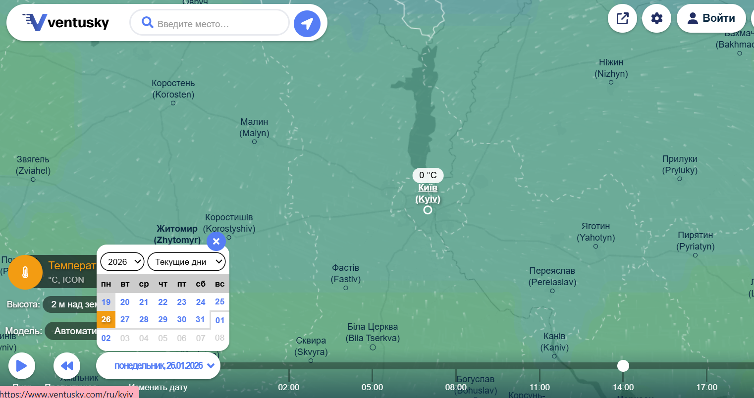 25 января станет еще мягче: –3 °C днем и около –1 °C вечером. А уже 26 января в столице прогнозируется повышение температуры до 0 °C, что может повлиять на состояние дорог и тротуаров.