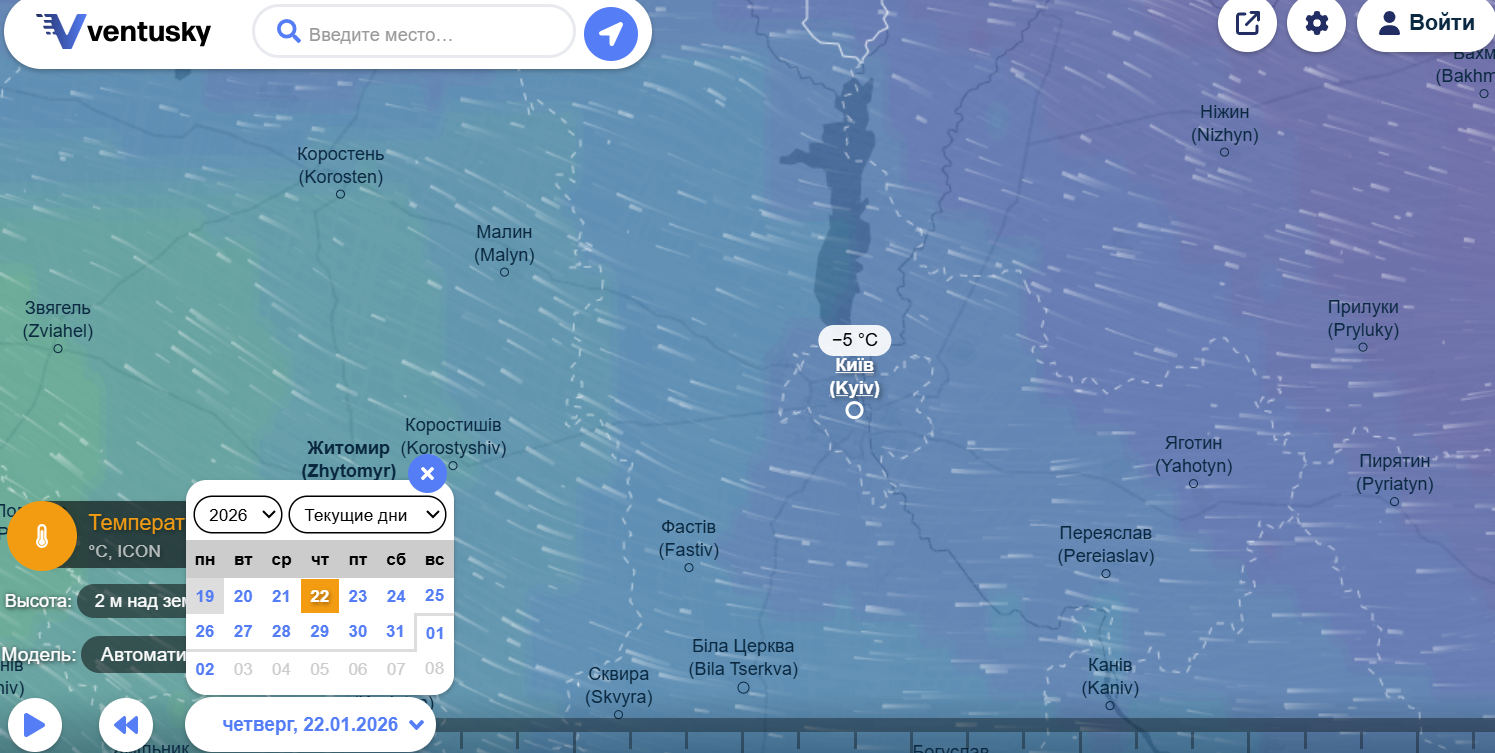Как сообщает ventusky, 20-21 января мороз будет держатся уверенно. Днем температура воздуха будет составлять около –10 °C, а в вечерние и ночные часы будет опускаться до –14 °C. Это период, когда без утепления лучше не выходить надолго, а водителям следует быть внимательными из-за риска гололеда.