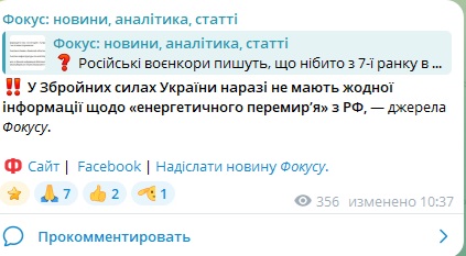 "Вооруженные силы на данный момент не владеют никакой информацией о "энергетическом перемирии" с РФ", — источники Фокуса.