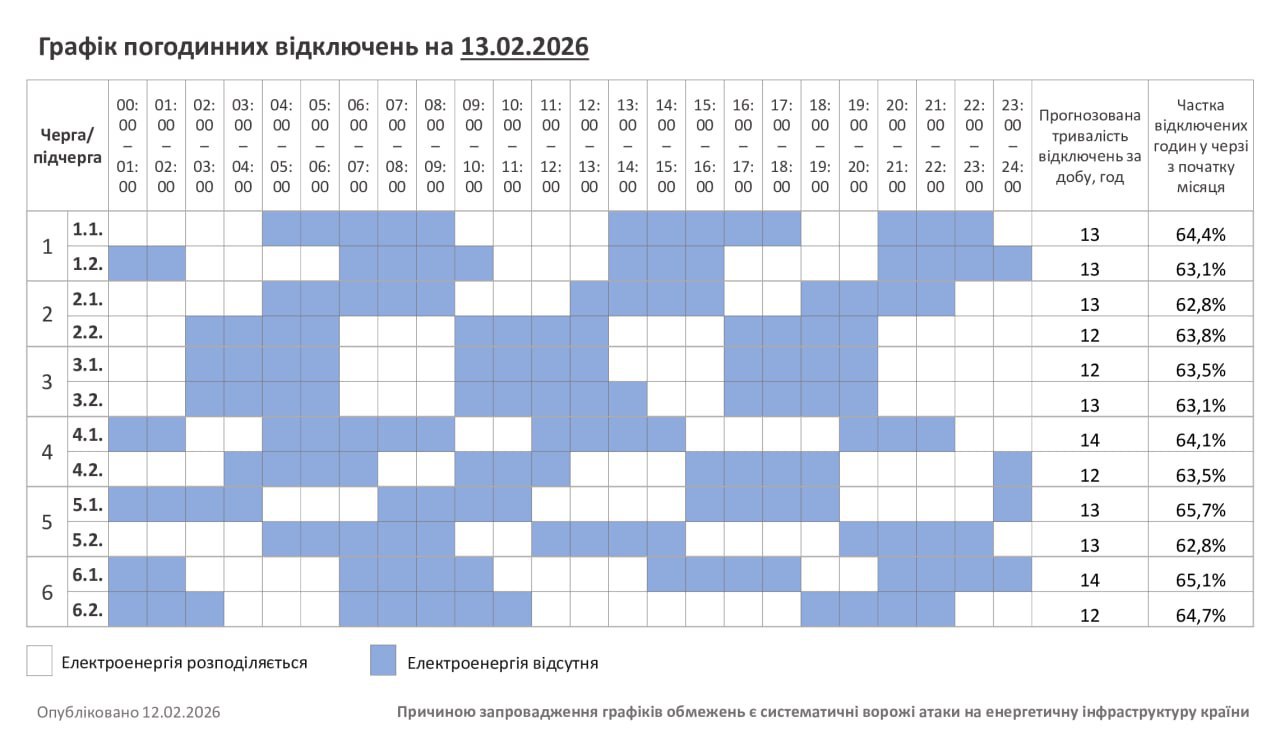 Из-за энергетического террора России украинцы вынуждены жить в условиях постоянных отключений света. Так что в пятницу, 13 февраля, в течение всего дня в стране есть отключение электричества для бытовых потребителей, сообщает "Укрэнерго"