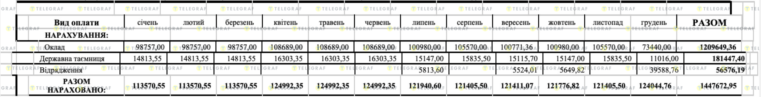 Таким образом, за 2025 год должностной оклад председателя ОГА составил 1 209 649 грн, доплата за гостайну — 181 447 грн и за командировку — 56 576 грн. Заметим, что в документе не указано сколько налогов уплатило должностное лицо за год и какую сумму получило на руки.