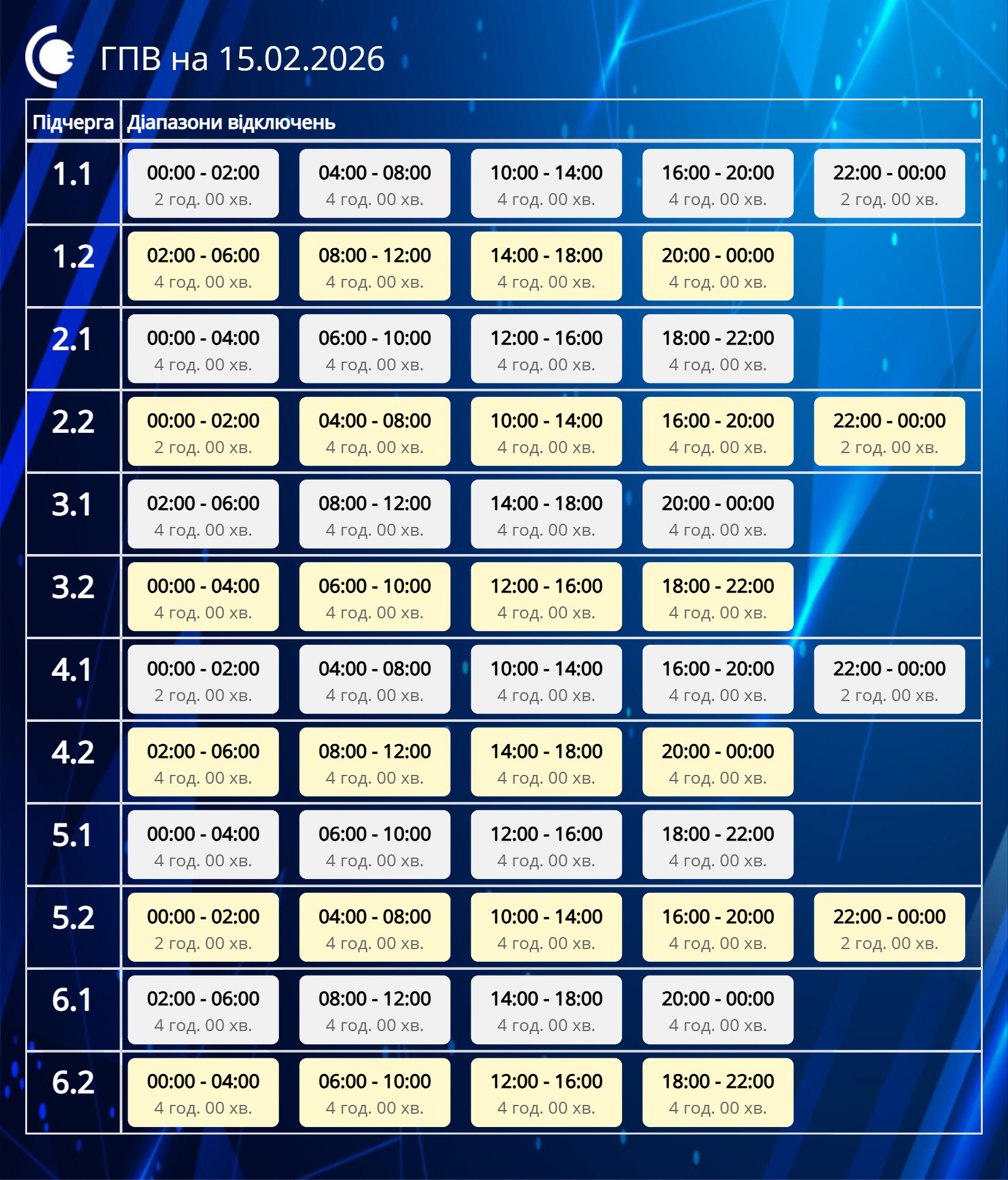Из-за энергетического террора России украинцы вынуждены жить в условиях постоянных отключений света. В воскресенье, 15 февраля, в течение всего дня в стране есть отключение электричества для бытовых потребителей, сообщает "Укрэнерго"