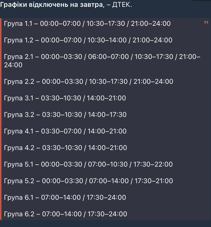 Как узнать свою очередь отключения в каждой области Украины, читайте в статье на "Телеграфе" по этой ссылке.