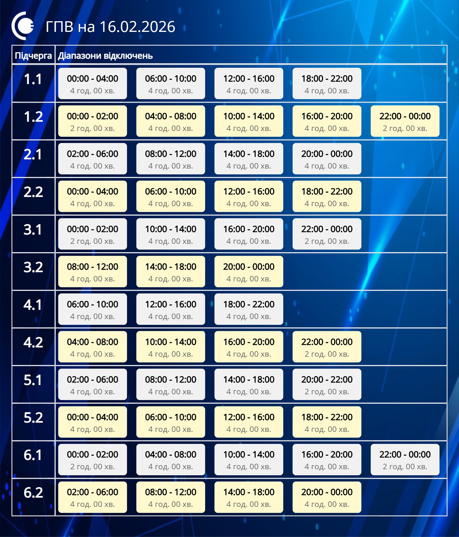 Общего графика отключения электроэнергии больше нет. В дальнейшем есть график почасовых отключений, но в обновленном формате. Теперь потребители могут индивидуально в свой адрес проверять, когда именно планируется отключение света.