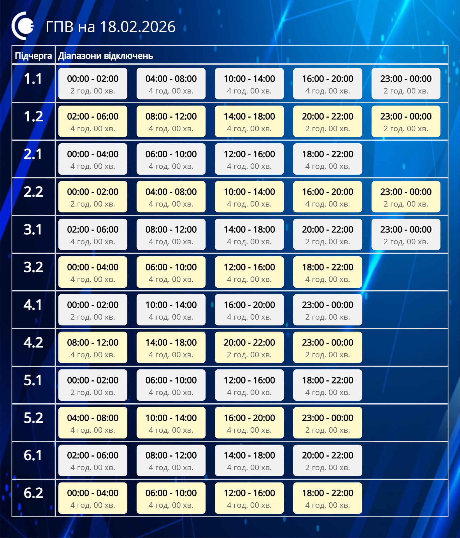 До трех очередей одновременно будут без света. Графики отключений на 18 февраля