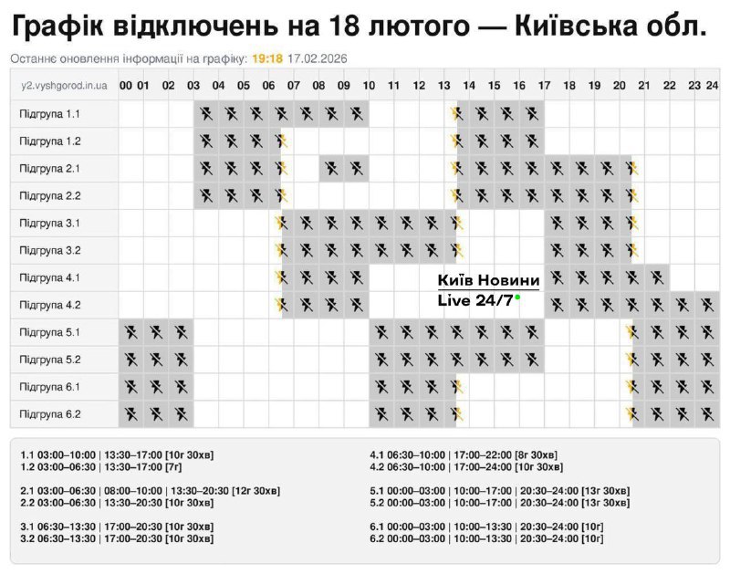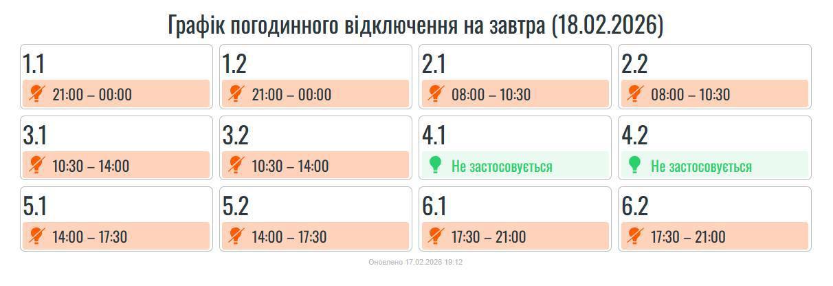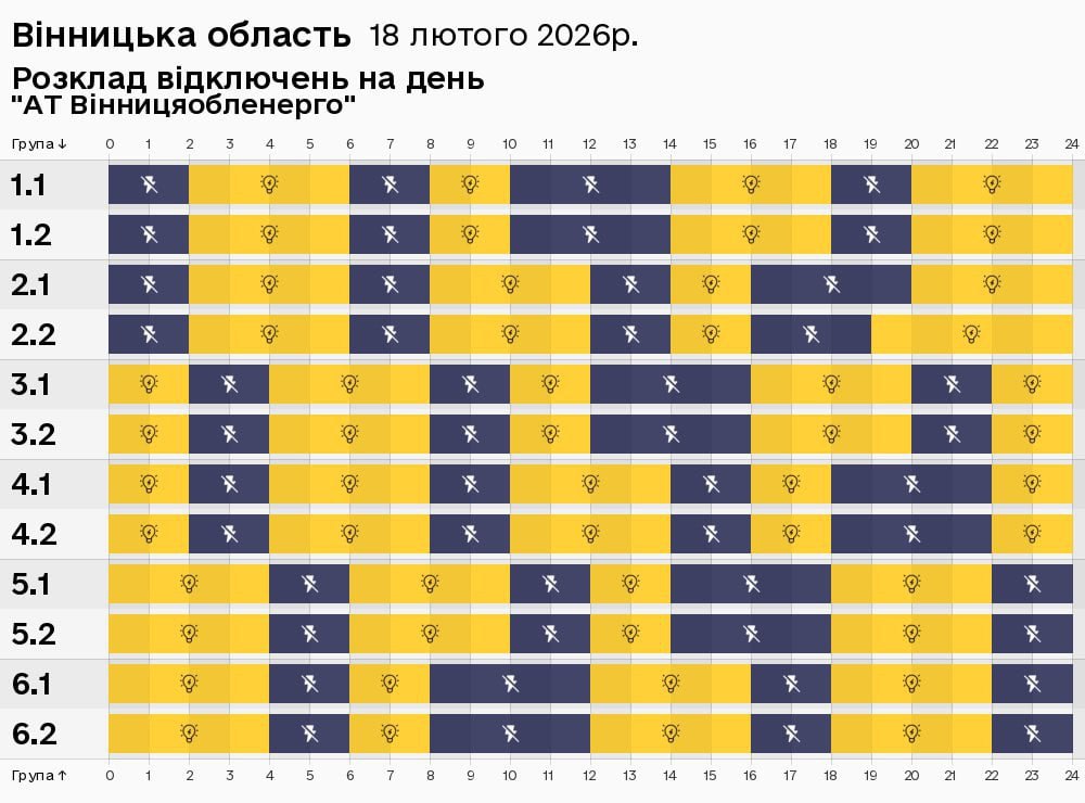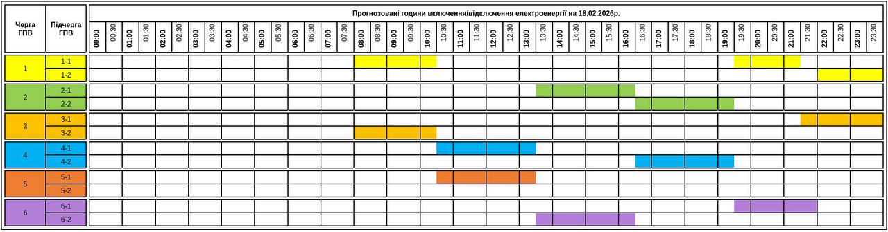 Из-за энергетического террора России украинцы вынуждены жить в условиях постоянных отключений света. Так что в среду, 18 февраля, в течение всего дня в стране есть отключение электричества для бытовых потребителей, сообщает "Укрэнерго"