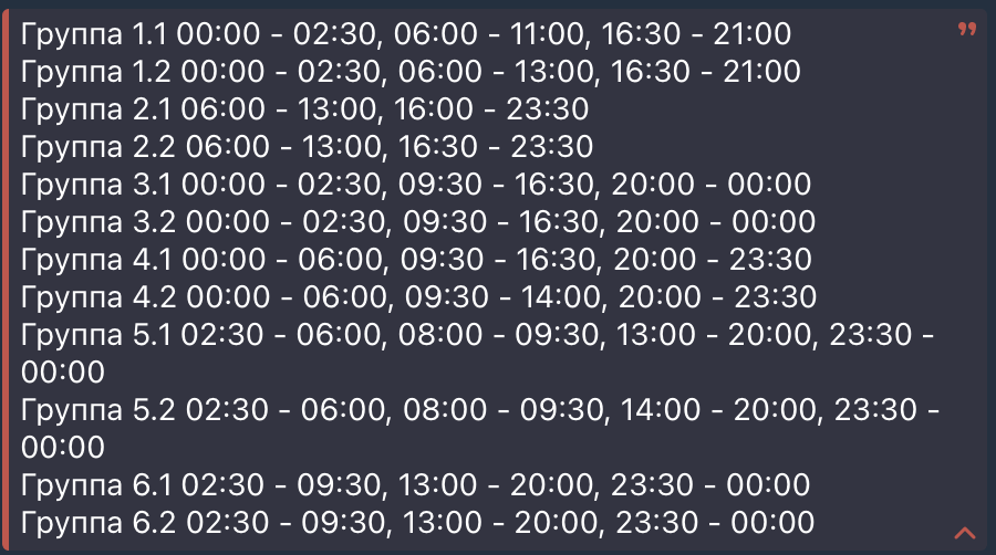 - Графики будут неравномерными в разных районах из-за особенностей повреждений энергосистемы.