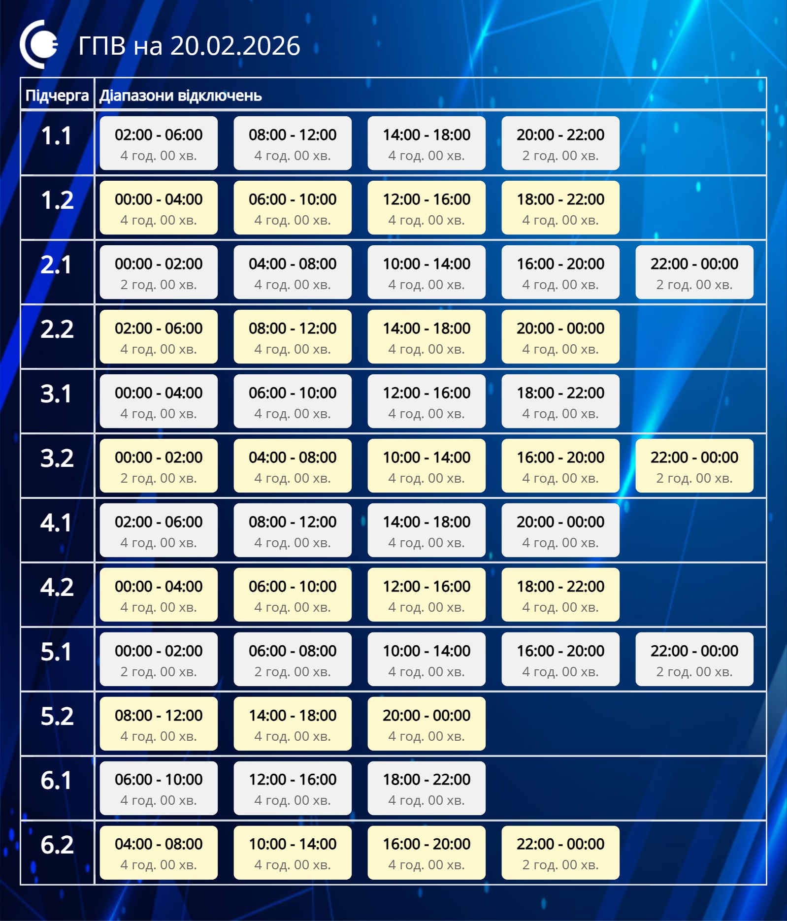 Графики не коснутся западных областей. Какие отключения будут 20 февраля
