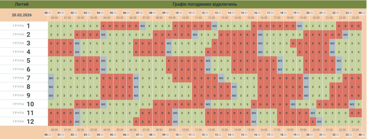 Из-за энергетического террора России украинцы вынуждены жить в условиях постоянных отключений света. Так что в пятницу, 20 февраля, в течение всего дня в стране есть отключение электричества для бытовых потребителей, сообщает "Укрэнерго"