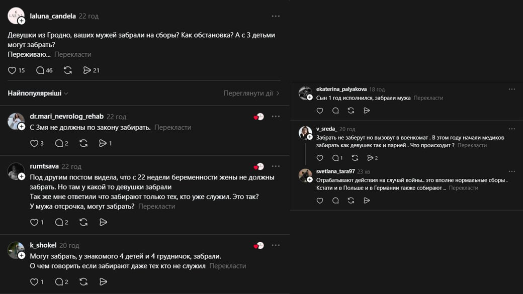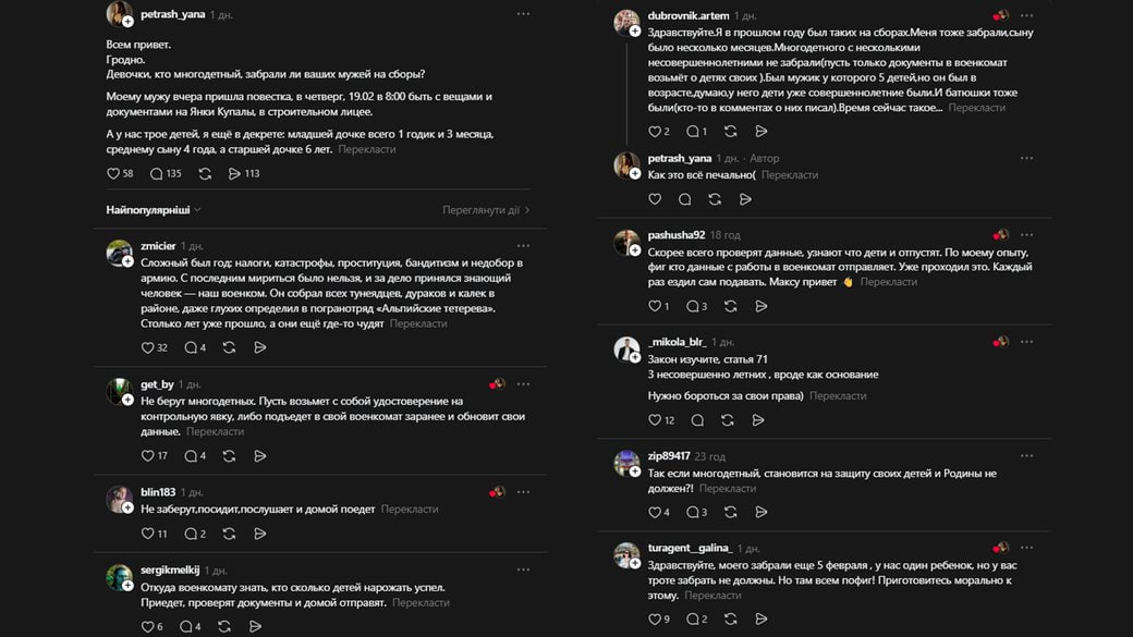 Как пишет "Суспільне", в соцсетях из-за повесток военнообязанных белорусов возникла настоящая волна паники. Женщины активно делятся тем, как быстро их мужчин отправляют на сборы, даже не давая возможности тщательно собраться и как забирают даже многодетных родителей.