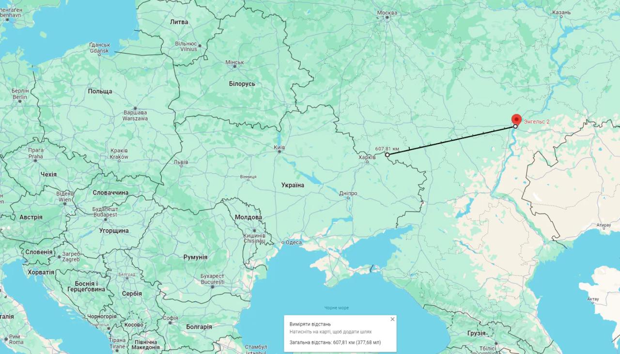 "Энгельс-2" — одна из крупнейших военно-воздушных баз в России. Она расположена в Саратовской области — примерно в 900 километрах от Харьковщины. Там базируются стратегические бомбардировщики, в частности Ту-160 и Ту-95МС.