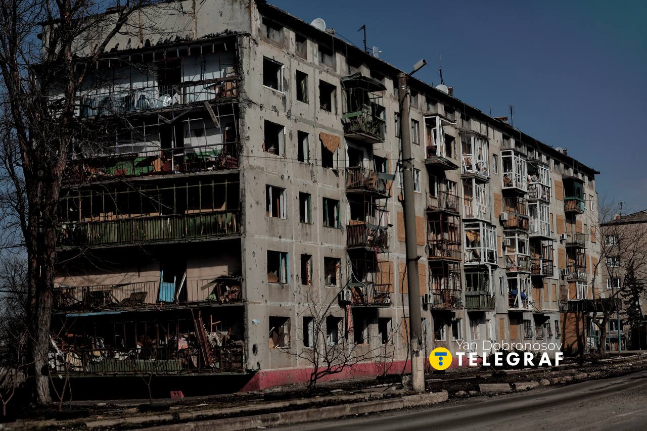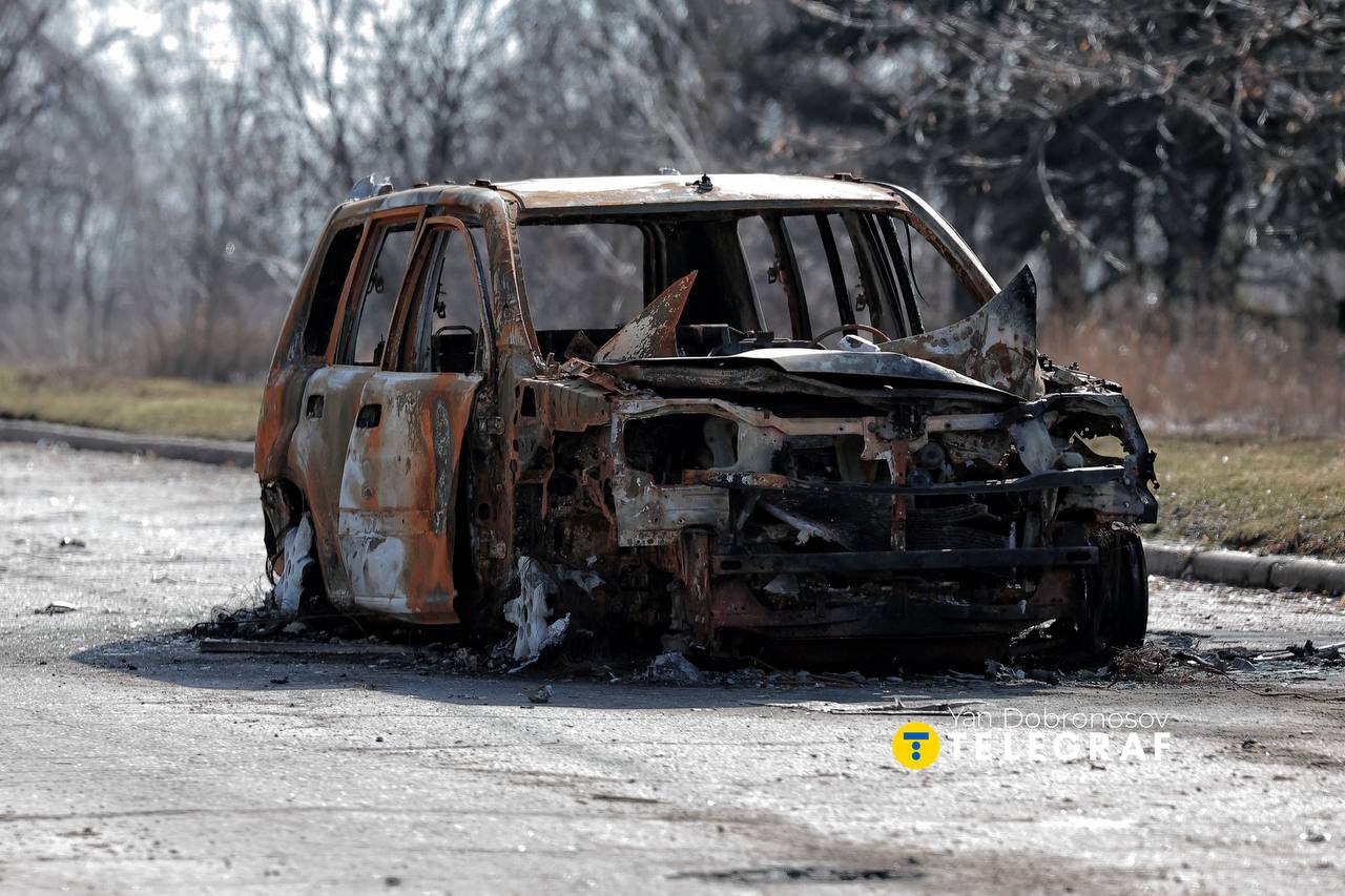 Сейчас город в 13 км от линии фронта, оставшиеся тут люди выживают, ведь ни водоснабжения, ни регулярного света уже давно нет. Почти на каждой улице, особенно в центральных районах, есть сгоревшие авто, которые атаковали дроны.
