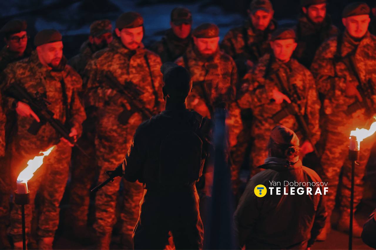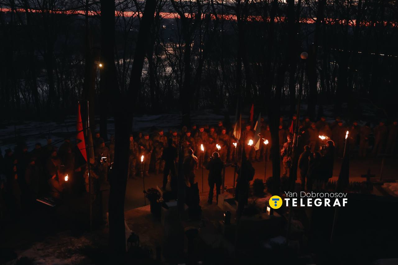 В субботу, 7 марта, в Киеве почтили память погибшего воина, Героя Украины Дмитрия "Да Винчи" Коцюбайла. На рассвете его подразделение освятило оружие и дало присягу.