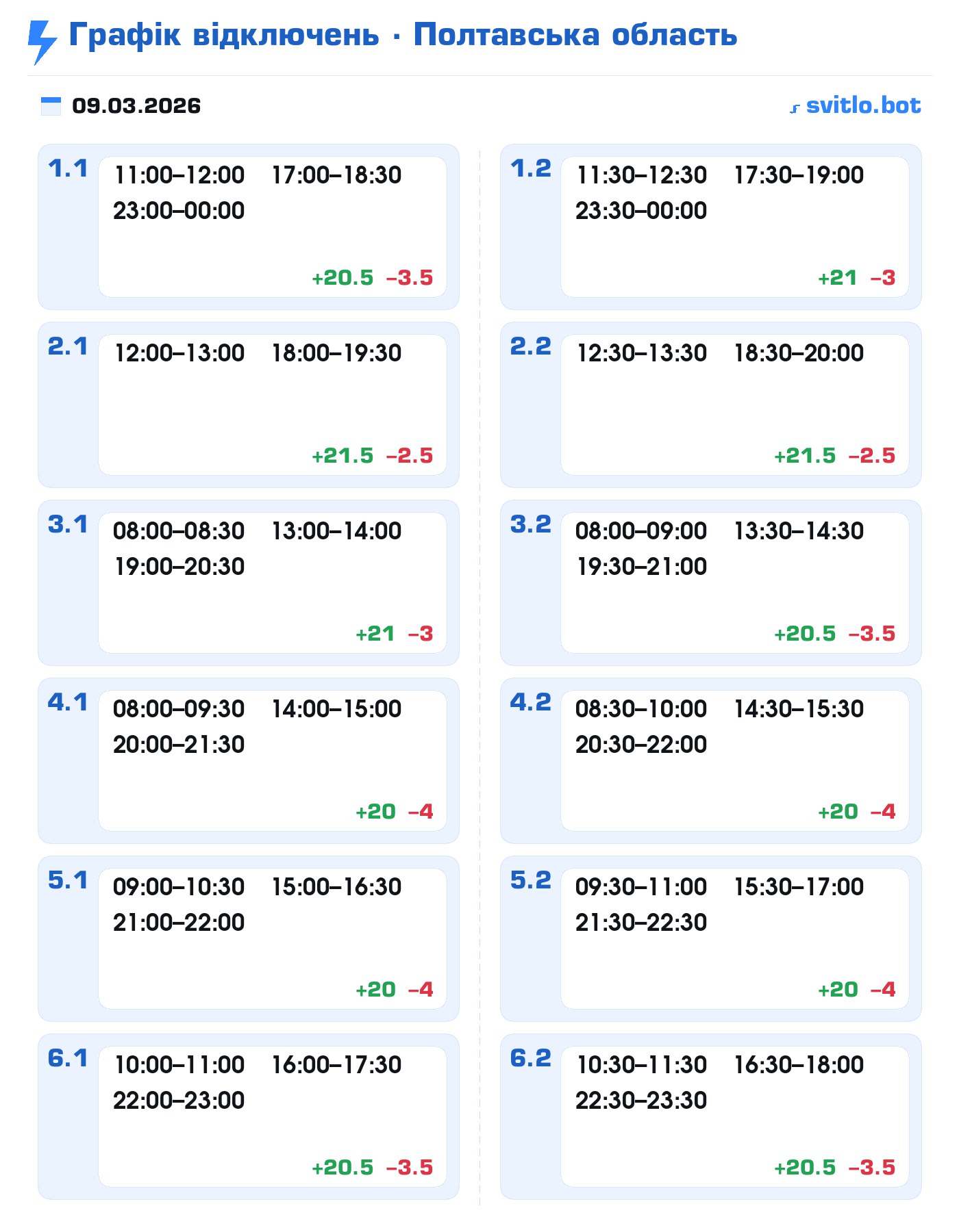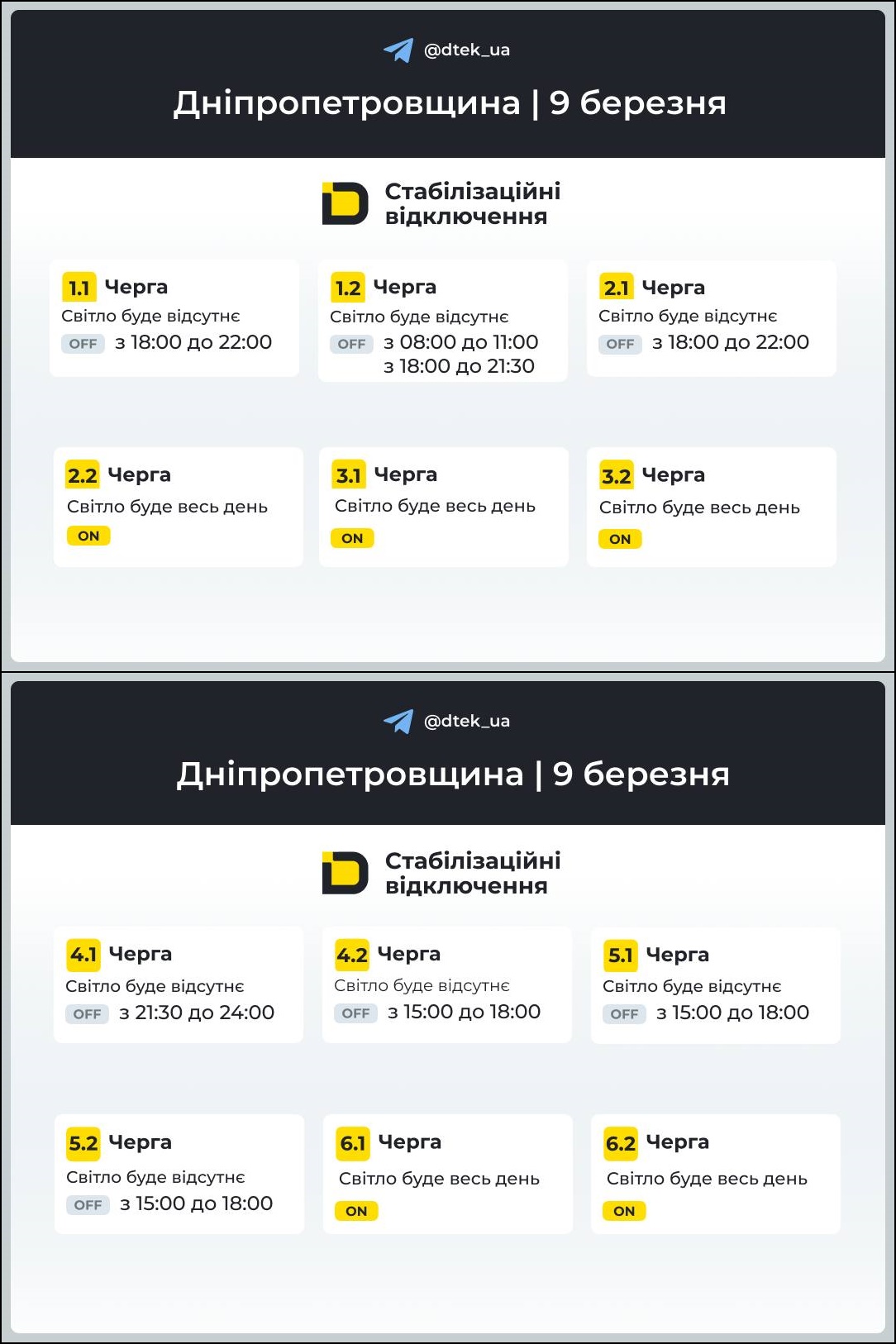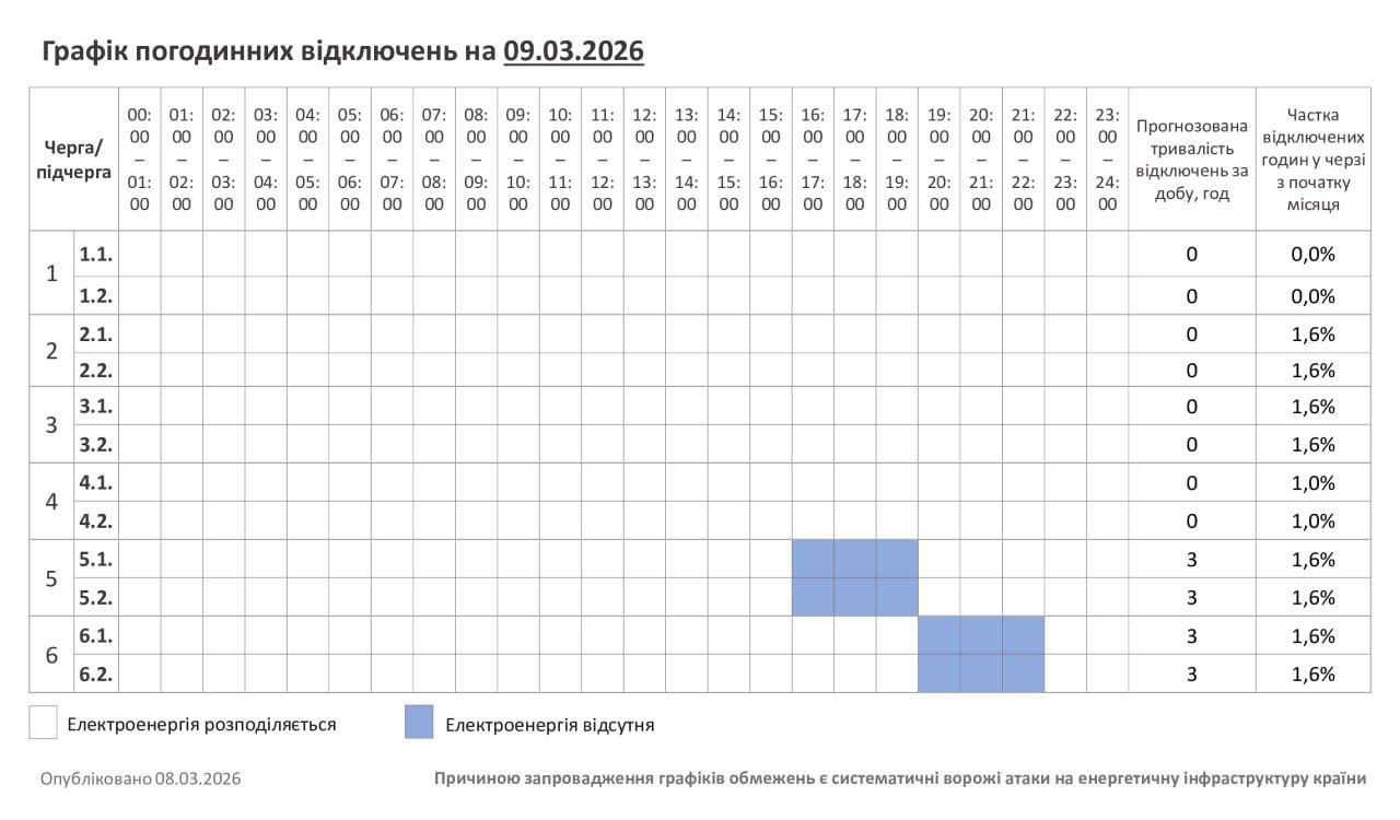 Отключают больше областей. Какие графики действуют 9 марта в Украине
