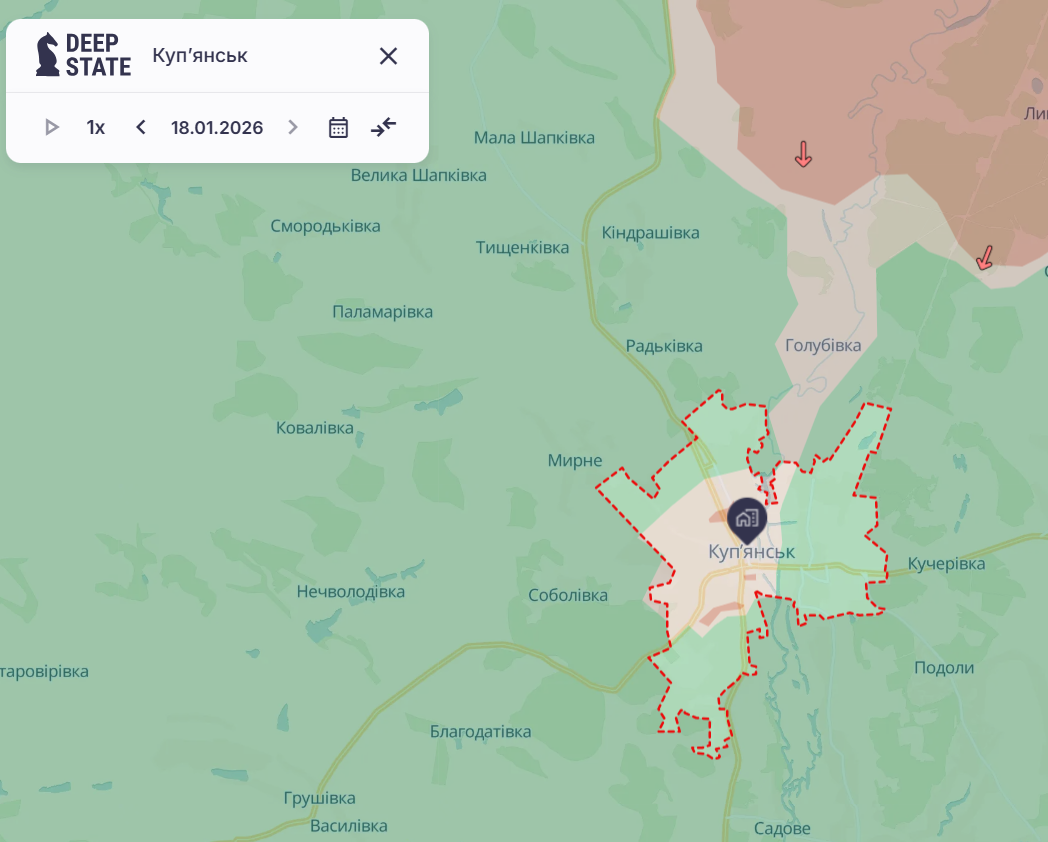 Карта боевых действий в Купянске 18 января 2026/DeepStateMap