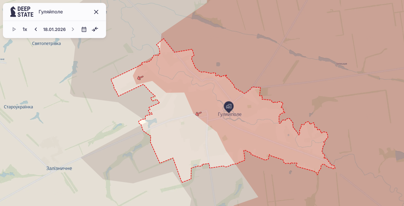 Карта боевых действий в Гуляйполе 18 января 2026/DeepStateMap