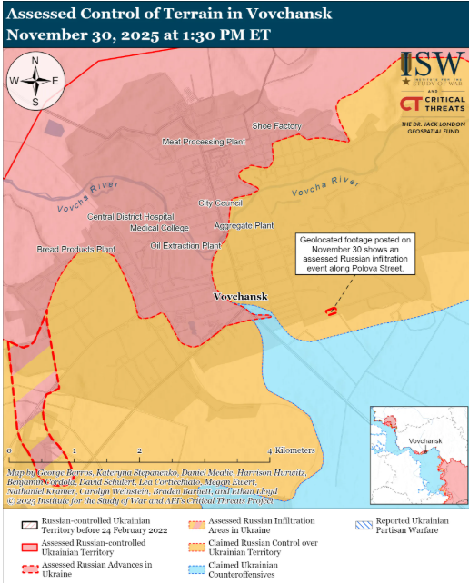 Карта боевых действий в Волчанске 30 ноября 2025/ISW