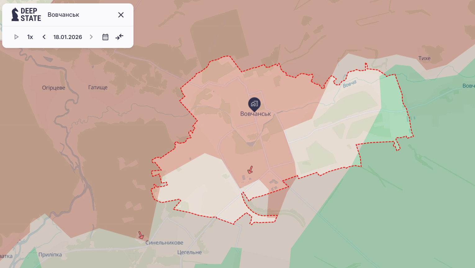 Карта боевых действий в Волчанске 18 января 2026/DeepStateMap