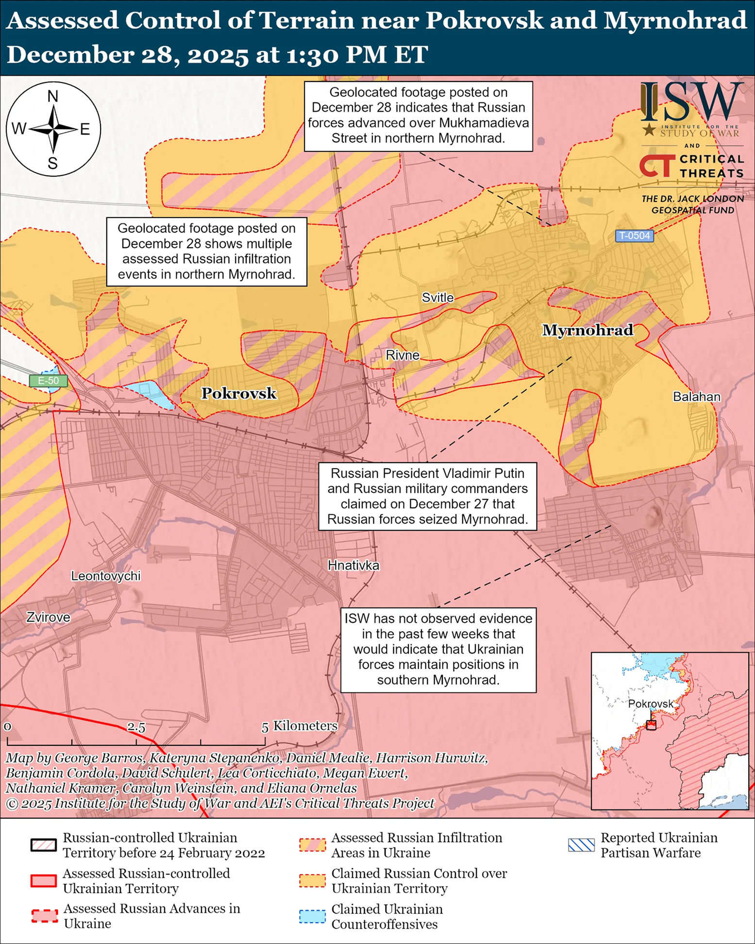 Карта боевых действий в Мирнограде 28 декабря 2025/ISW