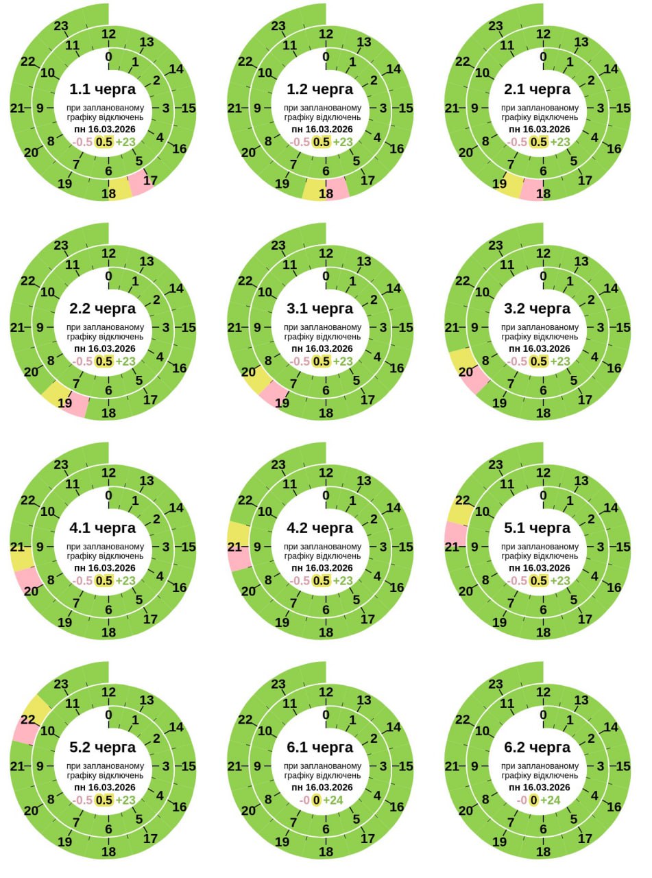 Из-за энергетического террора России украинцы вынуждены жить в условиях постоянных отключений света. В понедельник, 16 марта, во всех областях Украины с 17:00 до 22:00 будут отключения электричества для бытовых потребителей, сообщает "Укрэнерго".