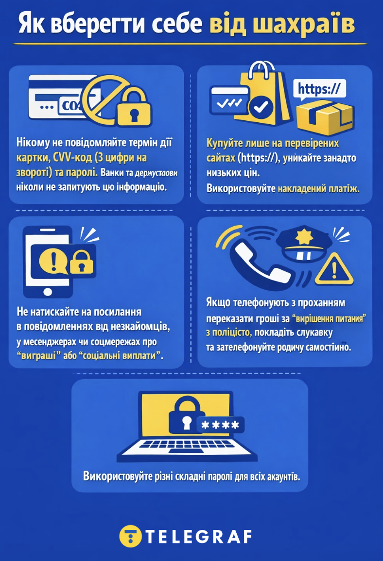 "Пожалуйста, будьте осмотрительны и не позволяйте мошенникам обмануть себя. Не переходите на подозрительные ссылки и не вводите персональные данные после перехода по ним. Если случайно ввели собственные банковские реквизиты – немедленно заблокируйте карту", — подчеркнули в "Укрэнерго".