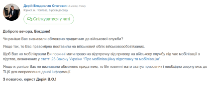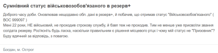 В частности, 22-летний мужчина обратился за консультацией после того, как увидел в приложении изменение статуса, хотя не служил и не проходил подготовку.