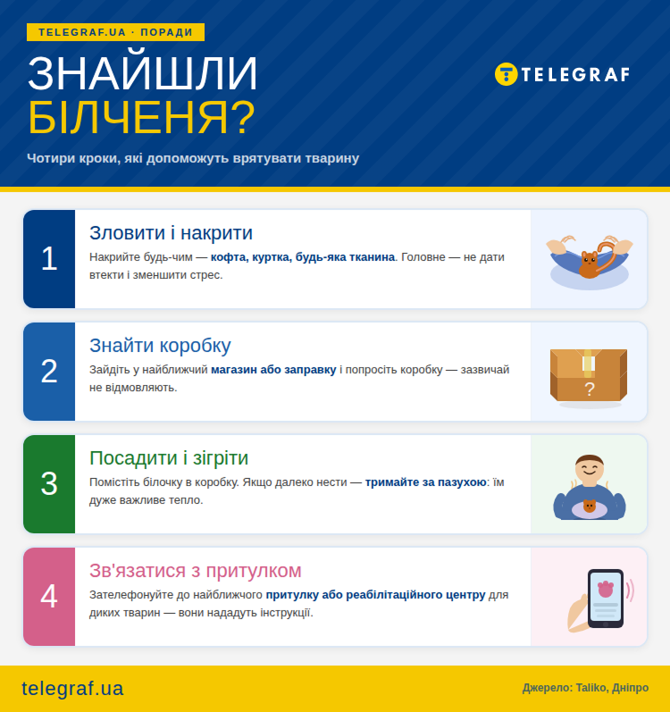 В Днепре и Днепропетровской области можно передать бельчонка в приют Taliko. Контактный номер — 0689708900. Реабилитационные центры и волонтеры, которые занимаются дикими животными, есть в большинстве областей.