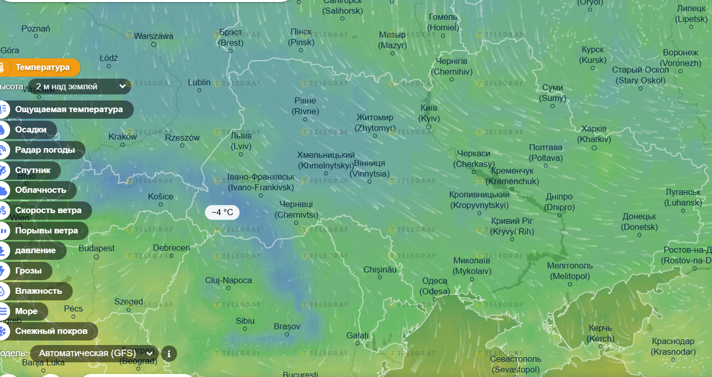 По данным портала ventusky, самая холодная погода ожидается в Карпатах. В Ровенской, Житомирской, Хмельницкой, Ивано-Франковской и Черновицкой областях температура опустится ниже нуля. Заметим – на карте эти области маркированы синим.