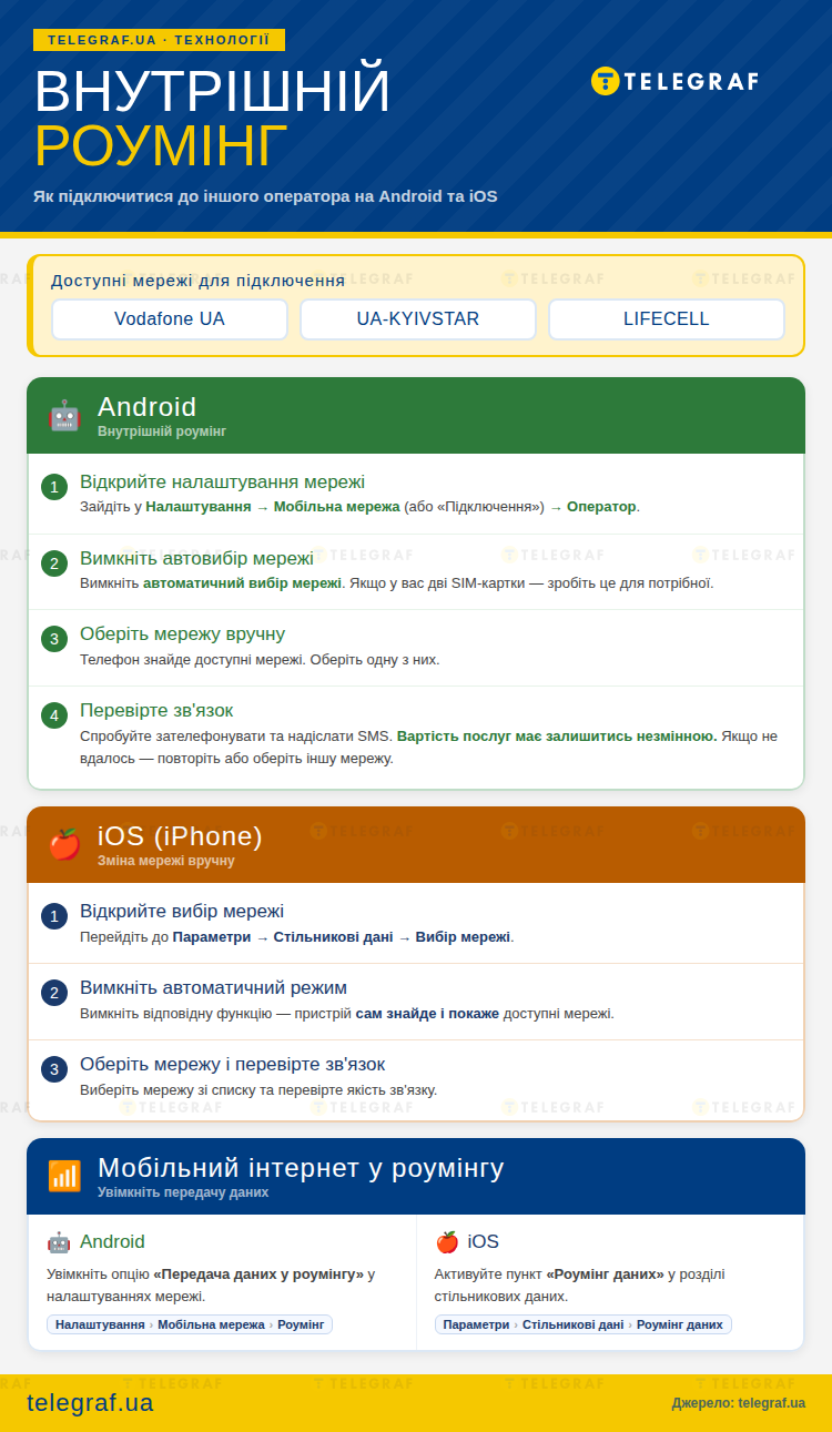 Если мобильный интернет одного из операторов или связь не работает, можно переключиться на внутренний роуминг – опция, пользование сетью другого оператора, без изменения номера. В зависимости от операционной системы телефона переключение происходит по-разному.