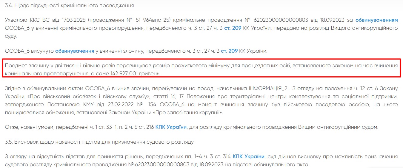Все обвинения против экс-военкома можно условно разделить на два блока. Первый – военный – охватывает самовольное оставление места службы (ст. 407 ч. 5 Уголовного кодекса Украины) и уклонение от несения обязанностей путем обмана (ст. 409 ч. 4 УК Украины). В этой же группе – эпизод с присвоением боевых выплат на основании поддельных документов и препятствование законной деятельности ВСУ в особый период (ч. 3 ст. 27, ч. 1 ст. 366, ч. 4 ст. 358 и ст. 114-1 УК Украины).
