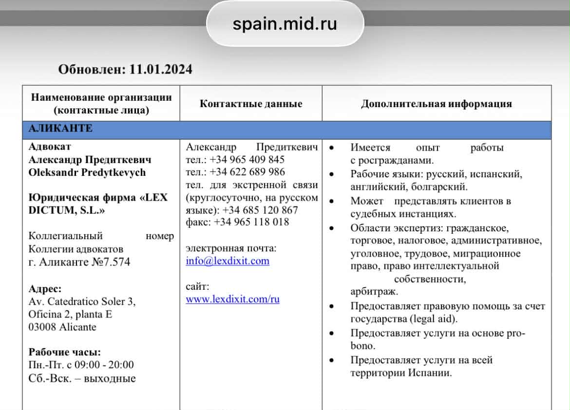 Классическим примером такой мимикрии, которую приводят представители украинской громады в Испании, является кейс основателя юридической фирмы Lex Dixit Александра Предиткевича. В частности, еще несколько лет назад он фигурировал в списках адвокатов при посольстве РФ и получал публичные награды от организации SORS как представитель "Русского дома в Аликанте".