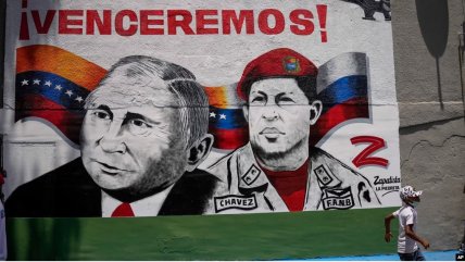 Мурал с изображениями Путина и Уго Чавеса в Венесуэле.