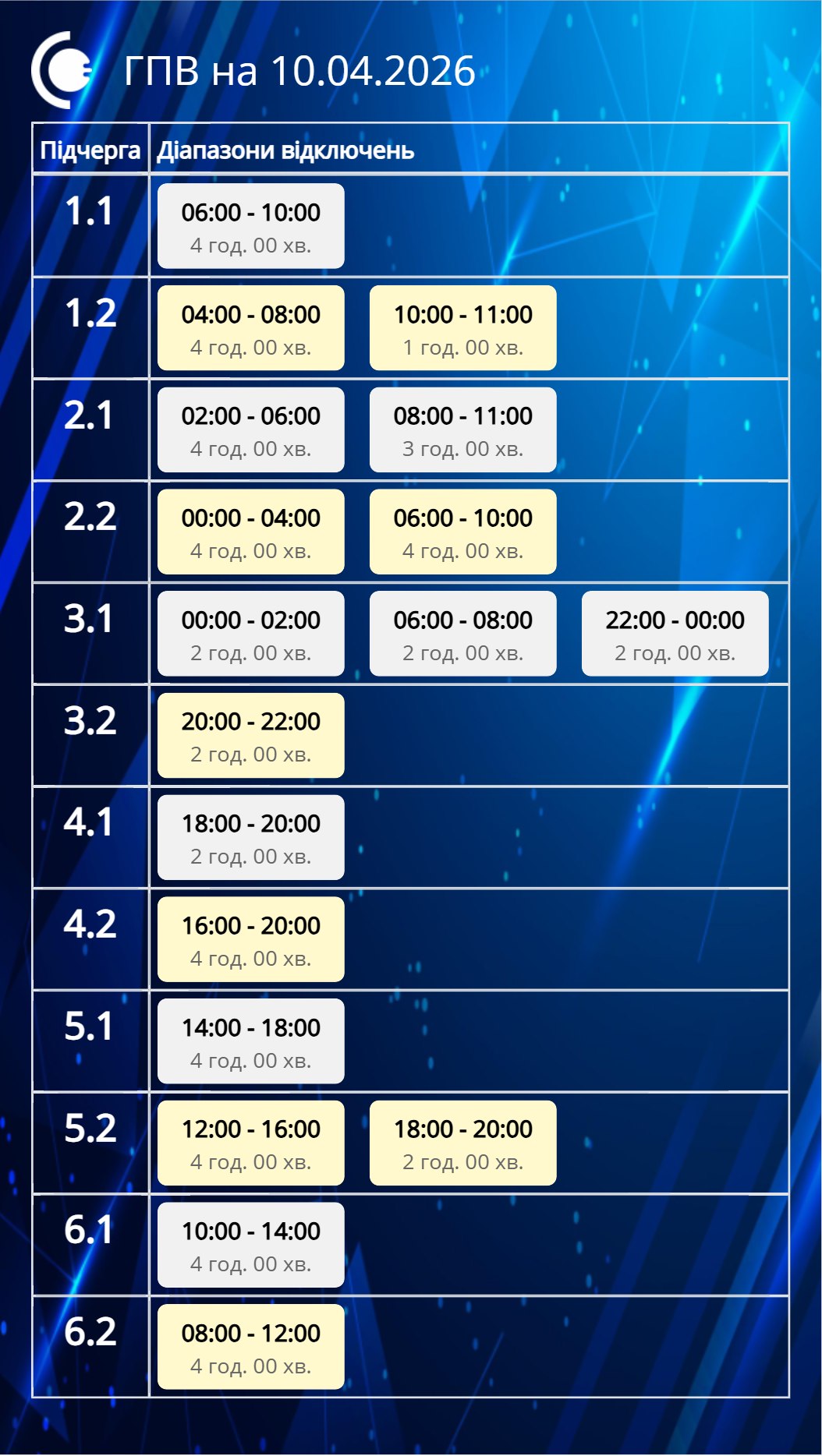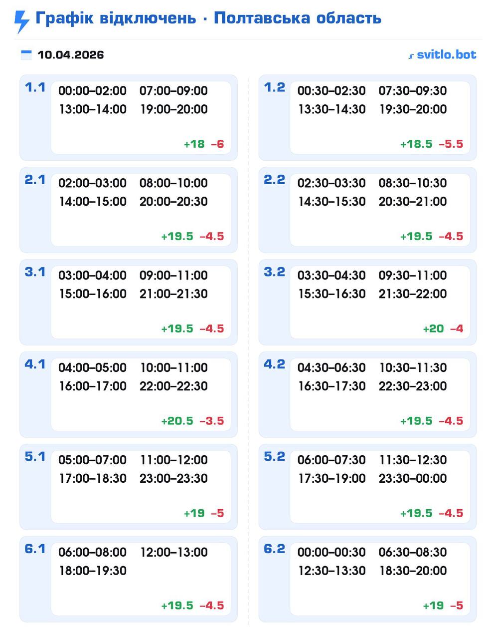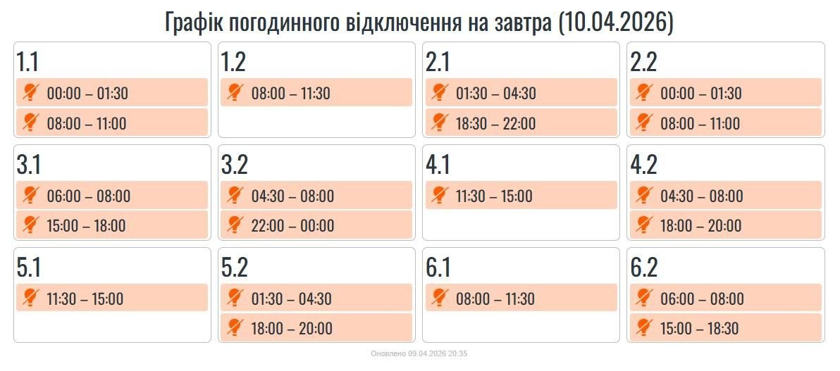 До трех отключений в сутки. Актуальные графики на 10 апреля
