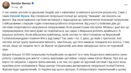 Борислав Береза – украинский политик, общественный деятель, бывший народный депутат и известный блогер, пишет, что "обоснованно убежден", что если рапорт Жукова будет доволен, то Украина от этого проиграет.